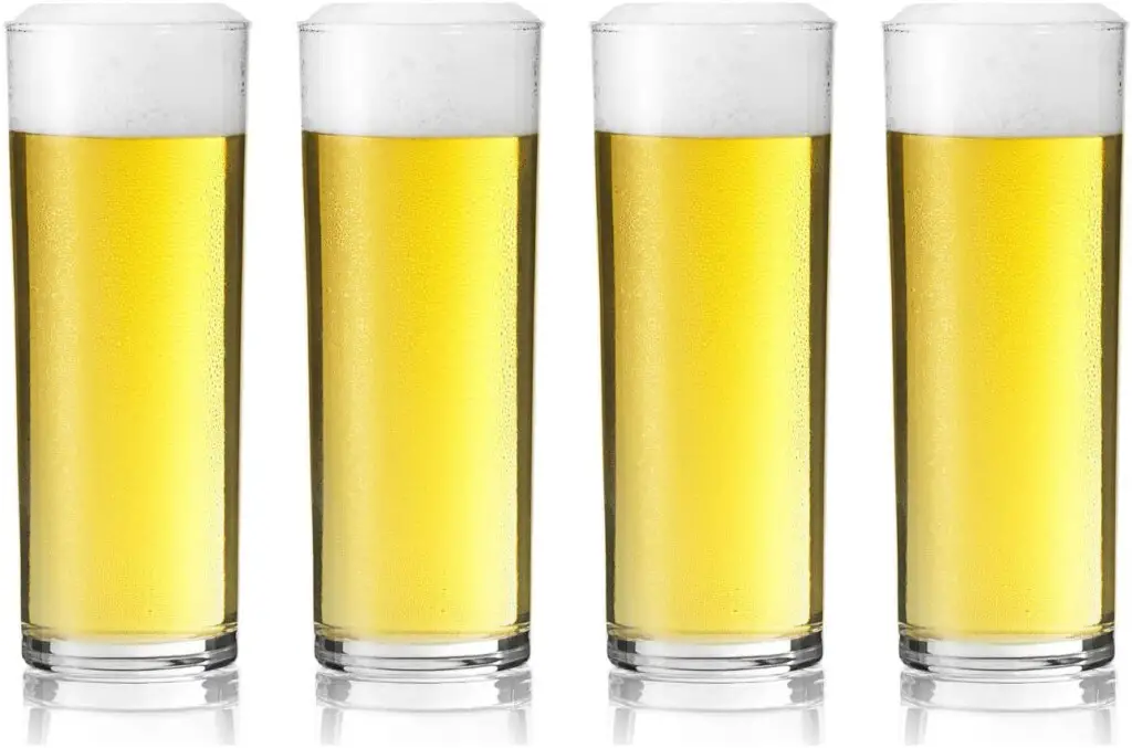 It is the most used glass to drink clear beers, it is qlto, thin and cone-shaped, which allows to contain the sparkling pilsner style carbonation, it also allows the color to be appreciated more clearly and the aromas to reach the nose.