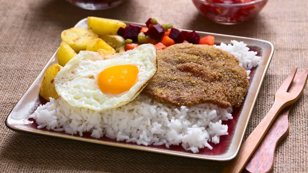 Se trata de una comida típica de Bolivia, eslaborada con carne empanada, que se sirve casi siempre, acompañada de huevos fritos, patatas, arroz blanco y ensalada de zanahoria y remolacha.