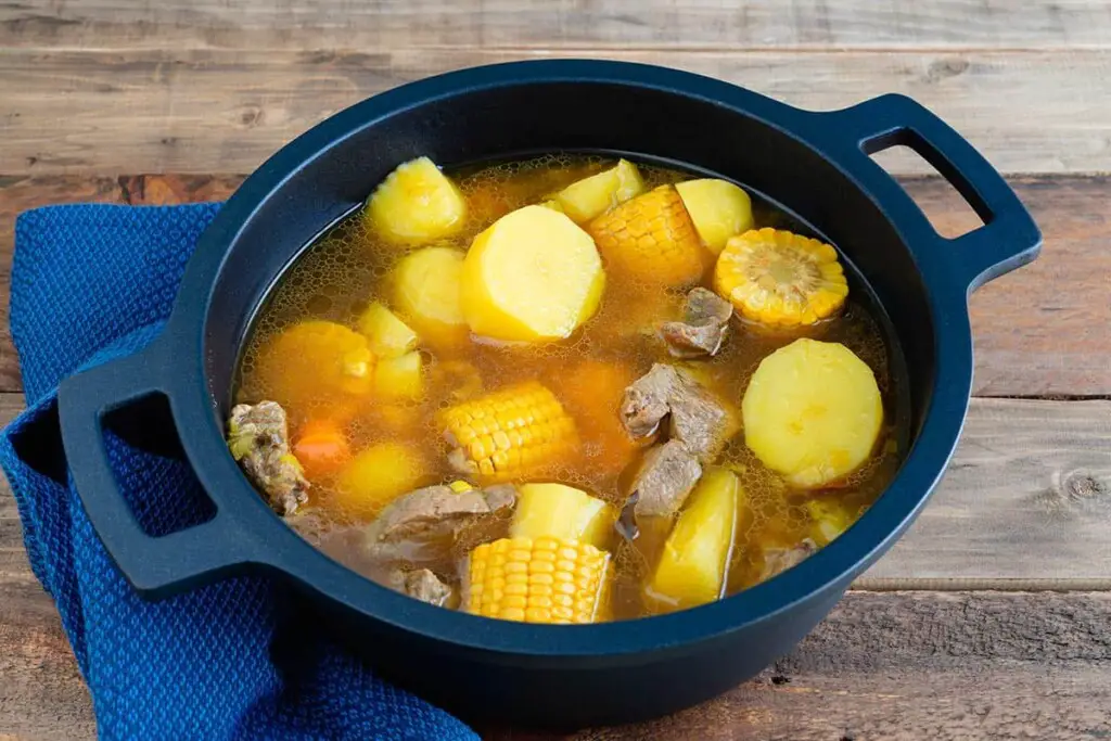 Aunque puede variar en su preparación, dependiendo del lugar donde te encuentres en el país cafetalero, por lo general está elaborado con papa criolla, plátano verde, yuca, mazorca, arracha, pollo, carne de ternera o pescado.