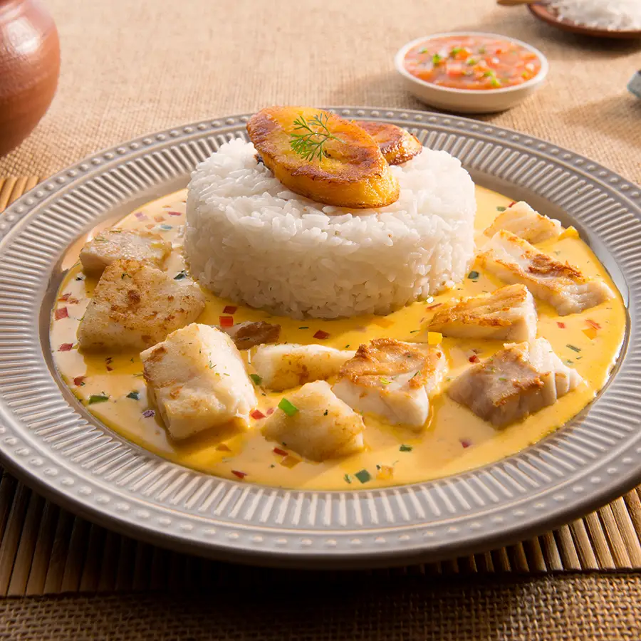 El encocado de pescado es una comida típica de Ecuador, se come mucho en la provincia de Esmeraldas, y está elaborado a base de coco y pescado, acompañado con arroz blanco, patacones o maduro frito.
