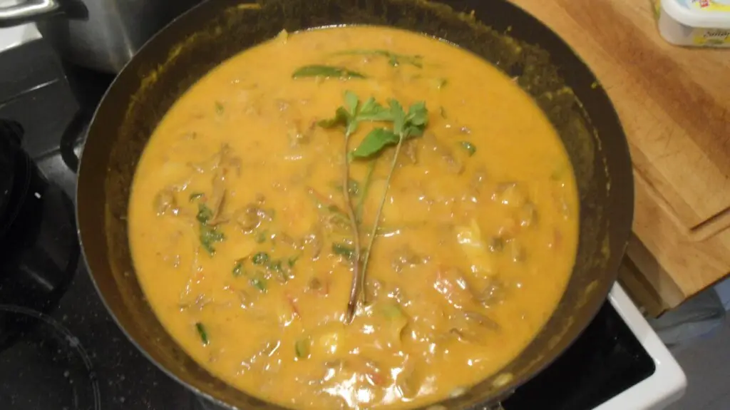 - Cuando la yuca esté lista, agregar la fruta de pan en trocitos