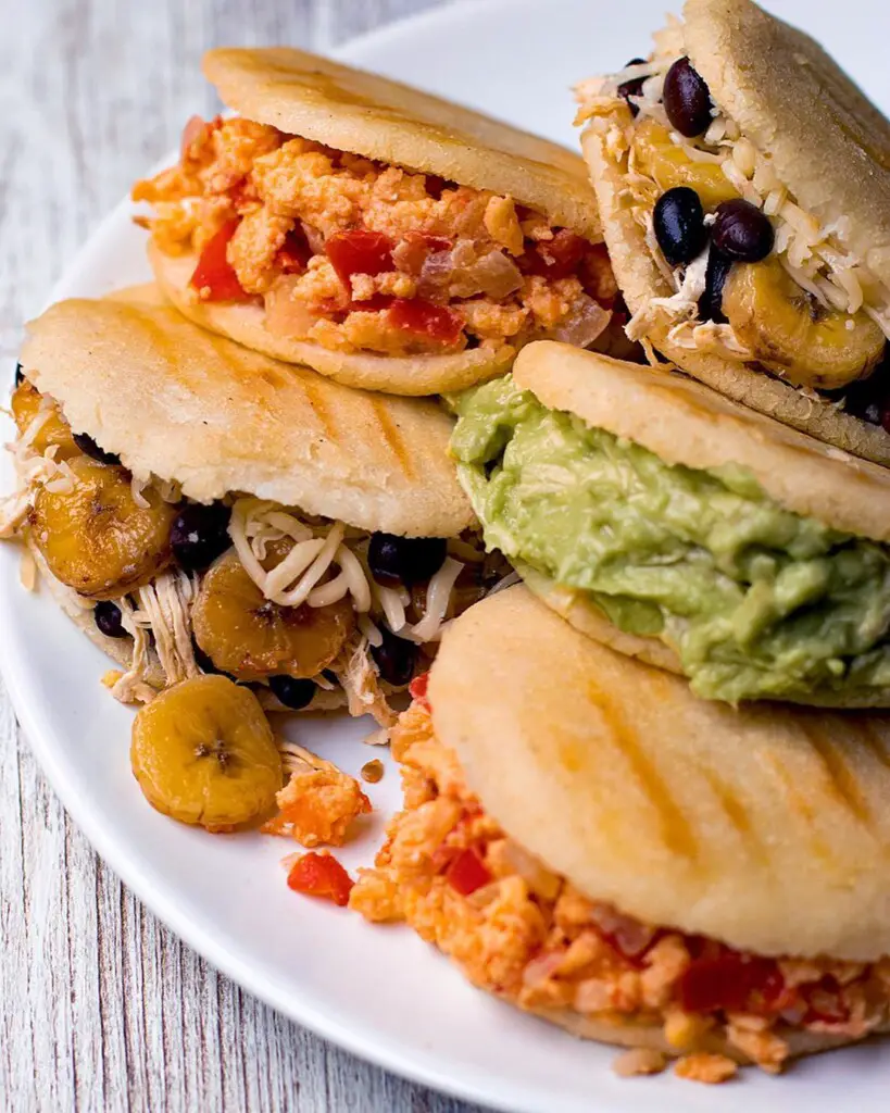 Las arepas son una comida típica de Venezuela, están elaboradas con harina de maíz y suelen estar rellenas de carne, pollo, queso, huevo, entre otros muchos ingredientes que dependerán del gusto de quien las coma.